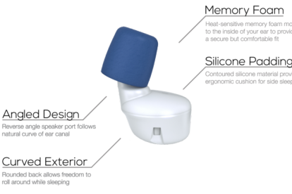Les bouchons d’oreilles connectés Hush se présentent comme un genre d’écouteurs intra-auriculaires sans fil. Ils permettent “d’éliminer le bruit ambiant (< 70 dB) tout en permettant à l’utilisateur de se relaxer en écoutant de la musique” .